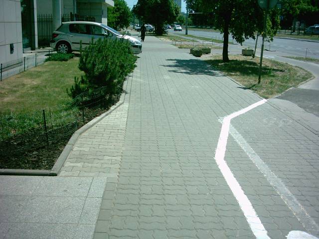 Niewątpliwie godnym pochwały jest fakt zwrócenia uwagi na niezwężenie chodnika przy przesuwaniu ścieżki rowerowej. Na zdjęciu po lewej widać nowy, jaśniejszy kawałek.