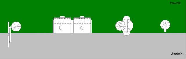a)znajdujące się na szerokości chodnika wszelkie elementy stałe (np. gazony, znaki drogowe, lampy, hydranty, kosze na śmieci, budki telefoniczne, reklamy) powinny być tak usytuowane, aby nie stanowiły przeszkody dla pieszych (rys. 11). [Wystające na chodnik białe linie po lewej stronie to znaki na wysokości co najmniej 2,2 m, umocowane na wysięgniku do słupa na trawniku. - przyp. red.]
