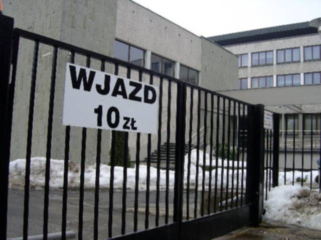 2. Wprowadzenie opłat za wjazd w ulicę Dewajtis i przepustek dla grupy stałych użytkowników, nie większej niż pojemność parkingów. Z wpływów z opłat można sfinansować etat strażnika. (na zdj. Wjazd na teren WMSD jest płatny)