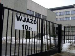 2. Wprowadzenie opłat za wjazd w ulicę Dewajtis i przepustek dla grupy stałych użytkowników, nie większej niż pojemność parkingów. Z wpływów z opłat można sfinansować etat strażnika. (na zdj. Wjazd na teren WMSD jest płatny)