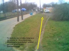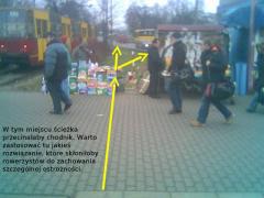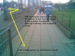 Tu kończy się ścieżka biegnąca od strony ul. Broniewskiego. Można ją tu przedłużyć wzdłuż peronu przystanku tramwajowego.