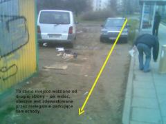 To samo miejsce widziane od drugiej strony – jak widać, obecnie jest zdewastowane przez nielegalnie parkujące samochody.