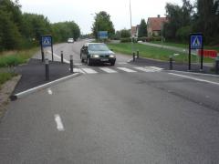 Na tym zdjęciu z 2012 roku widzimy aktualną sytuację na tym samym przejściu. Zlikwidowano sygnalizację świetlną instalując równocześnie z obu stron punktowe szykany zwężające jezdnię do... 3,5 metra! Kiedy nic nie jedzie, pieszy nie musi wciskać przycisku i czekać na zielone. A kiedy jedzie - wystarczy wejść na azyl, co czytelnie sygnalizuje kierowcom zamiar przejścia i zgodnie ze szwedzkim prawem obliguje do zatrzymania pojazdu. Tak dąży się do poprawy bezpieczeństwa na poważnie, a nie na niby jak w Polsce.