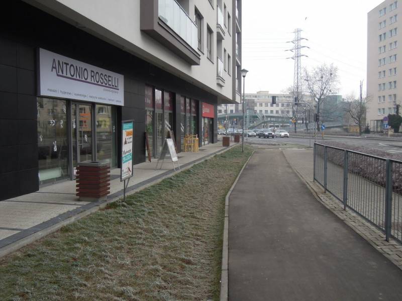 - brak możliwości dojścia najkrótszą drogą od chodnika biegnącego wzdłuż ul. Cybernetyki po północnej stronie do lokali usługowych znajdujących się na parterze budynków znajdujących się przy tej ulicy (aby się do nich dostać trzeba przejść przez trawnik lub iść drogą na około).