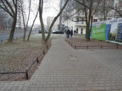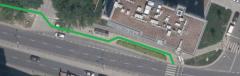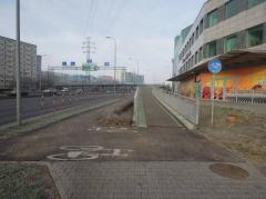 - brak chodnika biegnącego na wprost po południowej stronie ulicy Cybernetyki. Droga dla pieszych wiedzie okrężną drogą, by ominąć znajdujący się w tym miejscu parking dla samochodów.