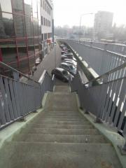 Z kolei pieszy, aby wejść na kładkę musi pokonać około 30 stopni.
