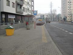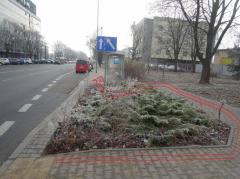 - konieczność omijania trawnika, aby dojść do przystanku autobusowego przy rondzie na skrzyżowaniu ul. Cybernetyki i Postępu. Warto zwrócić uwagę na to, że podjęto decyzję o wybudowaniu w tym miejscu zatoki autobusowej, choć przylega ona do pasa ruchu, który i tak kończy się ok 30 metrów dalej.