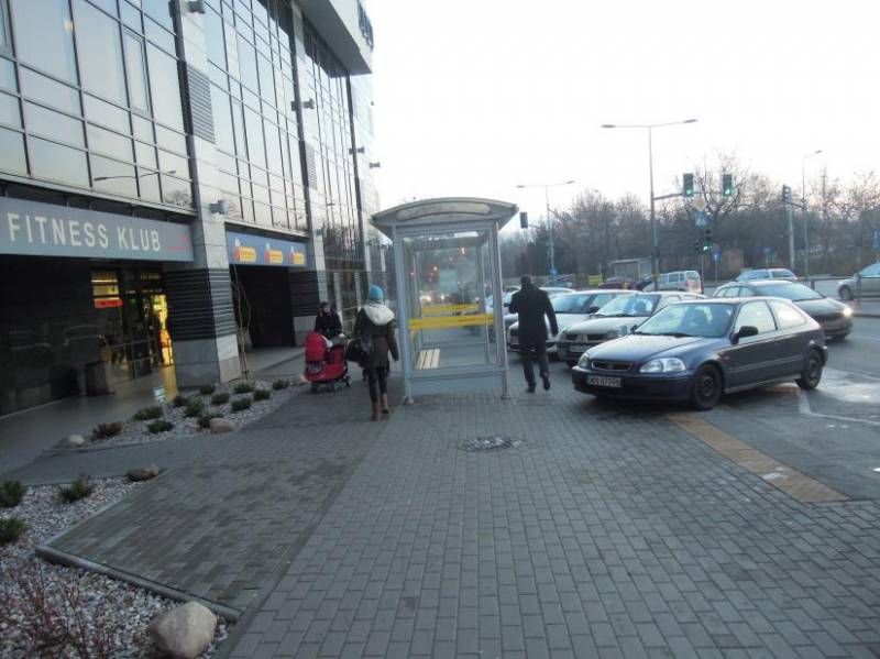 ...oraz wiatę przystankową ustawioną na trasie, którą poruszają się piesi.