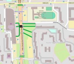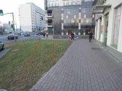 | Bukowińska/Pejzażowa | Brak dojścia „na wprost” do przejścia dla pieszych | Wyznaczenie chodnika umożliwiającemu dojście najkrótszą drogą do przejścia dla pieszych | Wyznaczanie tras pieszych w sposób, który pozwala na pokonywanie odległości najkrótszą możliwą trasą. |