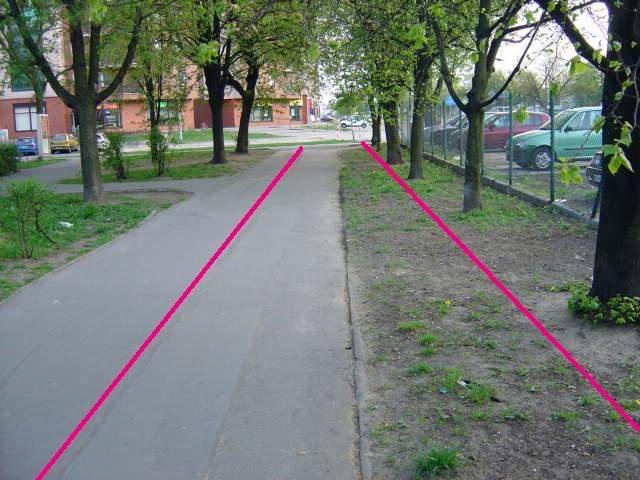 Poglądowa ilustracja możliwości wytyczenia ciągu pieszo-rowerowego po południowej stronie ul. Rudnickiego, widok na zachód.