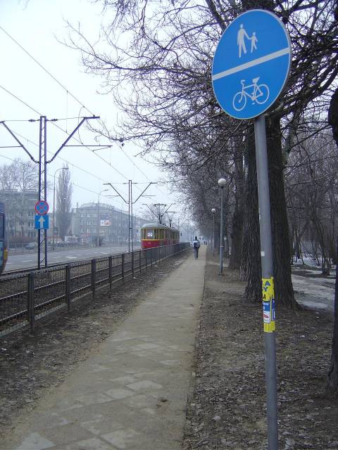 (...) Na Marymonckiej odc. Podleśna - Słowiańska i odc. Al.Zjednoczenia - Pętla Bielany istnieje droga pieszo-rowerowa jednak nie ma wydzielonej osobnej przestrzeni dla rowerzystów, ruch rowerowy dopuszczony jest na chodniku wraz z pieszymi. W tej sytuacji nie ma zastosowania przepis traktujący o wymaganej szerokości ścieżki rowerowej.