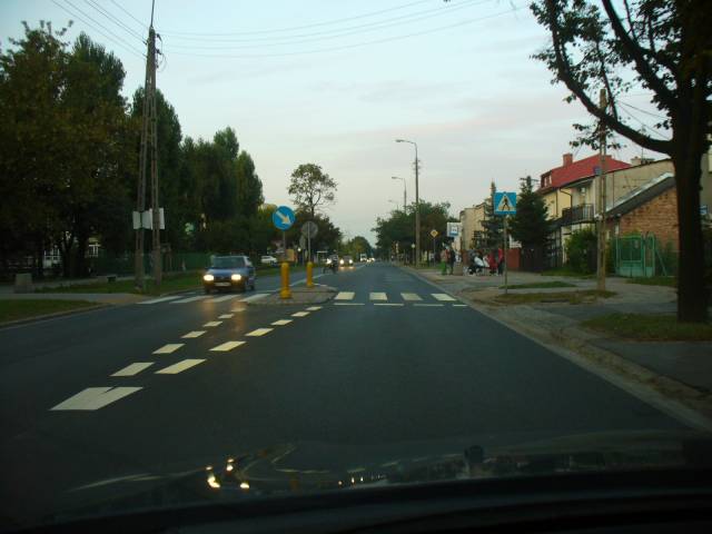 1. przejście przez ul. Korkową przy ul. Sezam. Wszystkie znaki są widoczne, pasy wymalowane, nawierzchnia równa. Zastrzeżenia budzi chodnik i krawężniki, ale prace na ulicy nie są jeszcze zakończone. Przejście jest oświetlone i wyposażone w minimum ochrony pieszego w postaci wysepki pośrodku, która daje mu możliwość przejścia na dwa razy z bezpiecznym oczekiwaniem pośrodku.