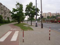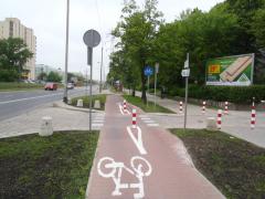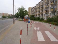 Na podkreślenie zasługuje fakt, że nie ograniczono się do wstawienia słupków, lecz zadbano od razu o poszerzenie w tym miejscu drogi dla rowerów.