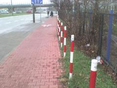 Między trasą AK a ul. Elbląską czyhały na rowerzystów słupki w skrajni,
