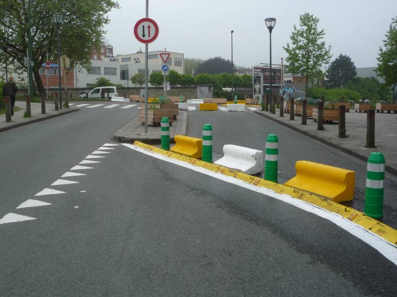 Obecnie zmniejszono go do około 4 metrów. Zwróćmy też uwagę, jak prostymi i dostępnymi od ręki środkami posłużył się zarządca drogi do wprowadzenia omawianych zmian. Prefabrykowane separatory przykręcane do asfaltu, plastikowe słupki, stosunkowo małe segmenty odlane z betonu i drewniane skrzynie w roli donic. Do tego oczywiście farba.