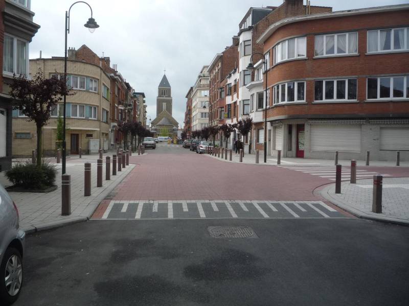 Aleja ta zawdzięcza swą nazwę patronce (czy może raczej matronce?) kościoła widocznego na dalszym planie zdjęcia (widok na zachód). Na pierwszym planie podniesiona tarcza skrzyżowania, które daje też dobry przykład zastosowania tzw. uszu Myszki Miki [zobacz >>>].