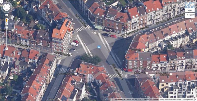 Przed zmianami plac był smutną i odpychającą asfaltową plamą, zastawianą ze wszystkich stron samochodami. Przecinały ją diagonalnie dwa czarno-białe szlaczki przejść dla pieszych o niespotykanej długości akcentując dodatkowo dysproporcję podziału przestrzeni na korzyść motoryzacji. W konkursie na najbrzydszy plac miałby spore szanse. (Fot. zapożyczona z Google Street View.)