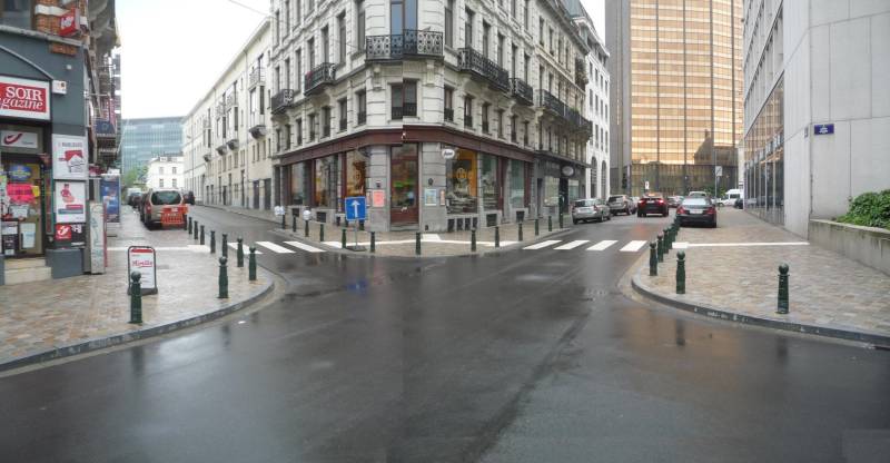 Przesuńmy się taraz na następne rozwidlenie tej pięcioramiennej gwiazdy, której remont nadał nowego blasku. Narożnik Rue du Nord (po lewej) i Rue des Cultes (z prawej). Zdjęcie to skleiłem z dwóch kawałków, aby poszerzyć kąt widzenia.