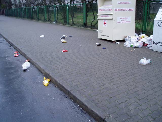 Wystarczyło trochę wiatru i w efekcie osiedle pełne jest porozwiewanej makulatury i plastikowych toreb.