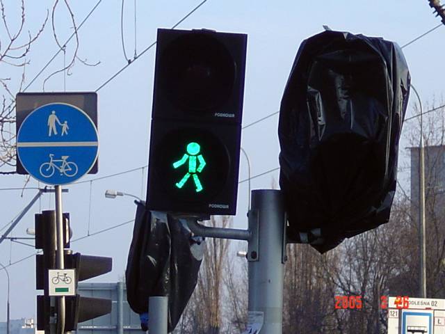Większość sygnalizatorów rowerowych do dziś nie działa, mimo że zostały przymocowane do słupów. Od dwóch lat skrywają je czarne worki foliowe. Gdzieniegdzie widać, że nie mają podłączonego zasilania.
