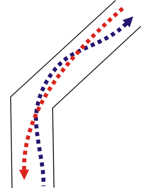 Rowery poruszają się po łukach. Im łuk ciaśniejszy, tym jazda mniej pewna i stabilna. Absolutne minimum bezpieczeństwa to promień łuku 4 m liczony do wewnętrznej krawędzi ścieżki, jednak zalecane są łuki o promieniu przynajmniej 20 m.