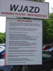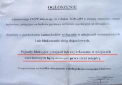 Dopiero na miejscu znajduje się kartka z niezbyt rzucającym się w oczy ostrzeżeniem, czym teraz grozi dojazd samochodem.