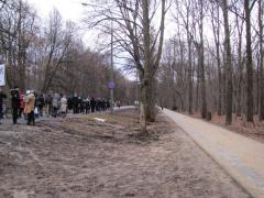 Marsz wkracza na teren rezerwatu. Po lewej byłe trawniki kompletnie zryte i zdewastowane podczas montażu chodnika.