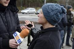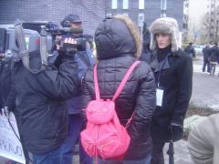Tadeusz Baranowski wyjaśnia przed kamerą TVP przyczyny i cele protestu.