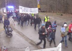 Przemarsz wzdłuż Lasku Lindego i ulicy Lindego, którą bielański urząd ponoć zamierza poszerzyć kosztem wycinki drzew. Mieszkańcy pobliskich domów nie chcą o tym słyszeć.