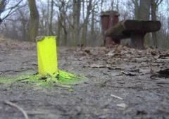 Idąc południową ścieżką wzdłuż ul. Dewajtis od Marymonckiej natrafiamy na geodezyjne paliki wbite w grunt.