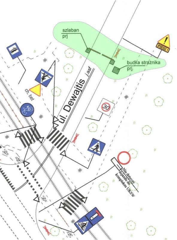 Za narysowanie na podkładzie istniejącej organizacji ruchu trzech kwadracików, dwóch kresek i podpisanie ich jako szlaban prj i budka strażnika prj (elementy wyróżnione zielonym tłem na fragmencie projektu, niesłusznie określonego jako budowlany).