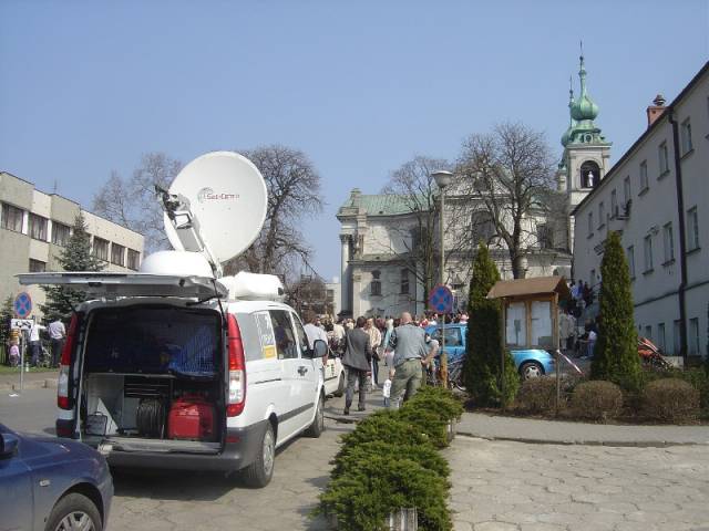 Przedstawienie z osłem w roli głównej przyciągnęło satelitarny wóz transmisyjny.