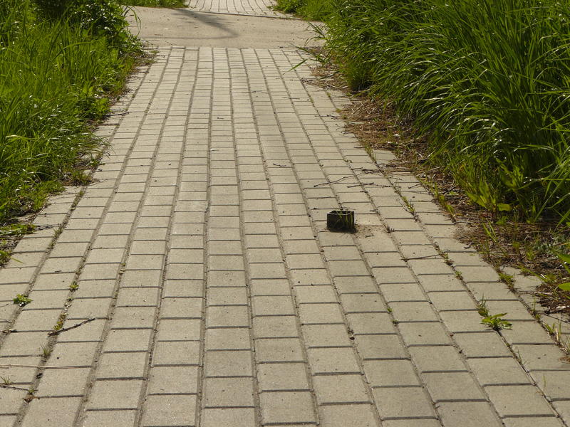 Wciąż wystająca pozostałość po słupie reklamowym.