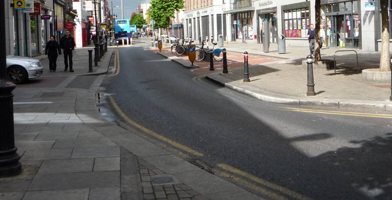 Ciąg dalszy ulicy -- widoczne są rowery publiczne (o nich w następnym odcinku), stojak na rowery prywatne oraz szerokość ulicy i promienie zakrętów nie straszne dla autobusów.