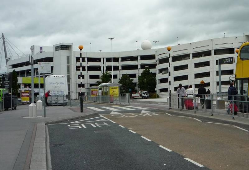 ...wyniesione przejścia dla pieszych przy przystankach autobusów piętrowych na lotnisku...