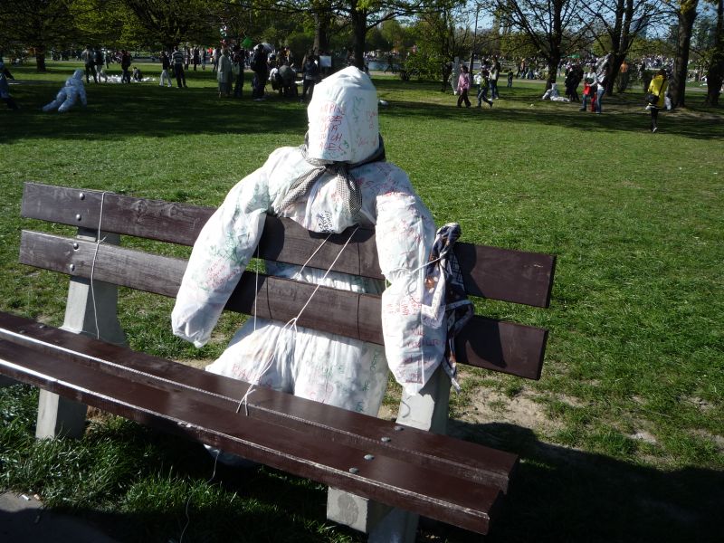 Po Polach Mokotowskich pałętały się zombi, czyli wyrzuty sumieni za generowanie nadmiaru odpadów.