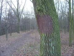 Gałęzie w skrajni mogące spowodować uraz głowy.