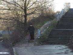 Brak alternatywnej trasy po stronie Wisły - te schody przy południowym przyczółku nie są jedynym utrudnieniem.