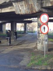 Projektant nowych estakad zastosował podobną do obecnej energochłonną barieroporęcz, która nie wyeliminuje tego zjawiska. A przecież niezależnie od przebiegu ścieżek i chodników ludzie pod estakadami chodzić będą. Nie chcemy chyba odgradzać dzikiej Wisły płotem jak na Wale Miedzeszyńskim [zobacz >>>]...