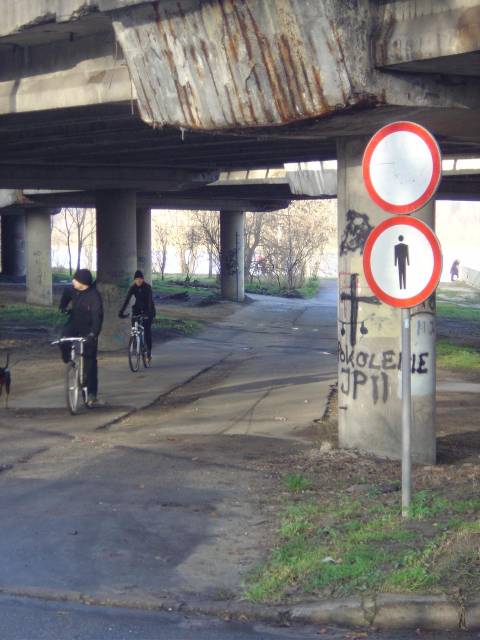 Przed dwoma dniami zakazano wjazdu na trakt przy ul. Pergaminów, gdzie do głośnego (dosłownie i w przenośni medialnej) oberwania kawałka betonu na ścieżkę rowerową doszło mniej więcej... przed dwoma... laty.