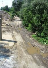 O ile można na wysokości ul. Pergaminów na razie zjechać z Wisłostrady, o tyle nie ma na nią legalnego wjazdu. Samochody opuszczające budowę musiałyby więc albo cofać się i przecinać rezerwat ulicą Dewajtis (co trudno sobie wyobrazić jako sprzeczne z tamtejszą organizacją ruchu), albo wyjeżdżać na ul. Farysa lub Wisłostradę w rejonie kładki przy KS Hutnik. Dlaczego więc nie zlokalizować tam również wjazdu?