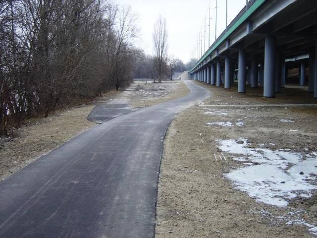 Minus - mimo że nie brakowało miejsca -- bezsensownie dosunięto ścieżkę jak najbliżej estakady. Dlaczego?