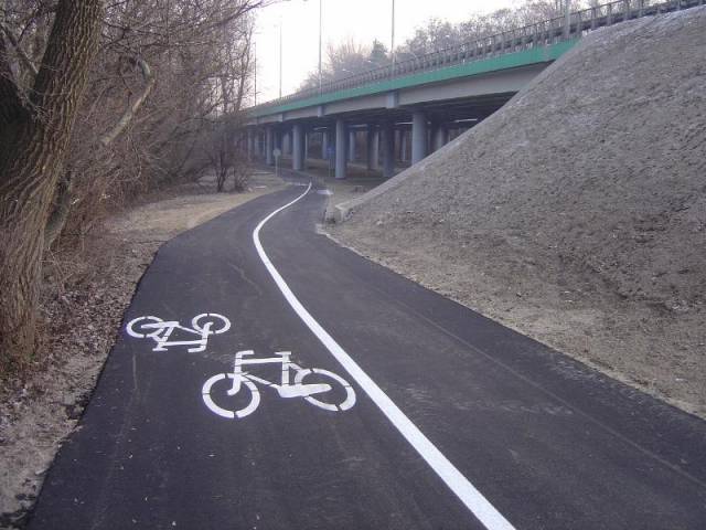 Plus - spadkowy odcinek przy północnym przyczółku uległ znacznej poprawie. Nowiutki asfalt bez krawężnika dzielącego pasy ruchu zachęca do jazdy i marzeń o podobnych warunkach w całym mieście...