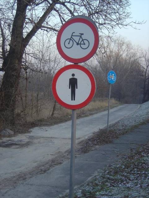 Dużo dalej, przy młocińskiej kładce napotykamy na niespodziewane zakazy z czasów budowy. Czyżby to wszystko, co pokazano wyżej, czekało dopiero na przecięcie wstęgi? A może na poprawki?
