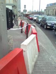 Przejścia dla pieszych nie wykonano nawet tymczasowo w momencie zamknięcia przez PKP przejścia podziemnego pod ulicą Emilii Plater, co skutkuje koniecznością znacznego nadrabiania drogi przez pieszych zmierzających do Dworca Centralnego. Gdyby takie utrudnienia czekały na kierowców, już dawno podniósłby się ogólny lament na postępowanie władz miasta.