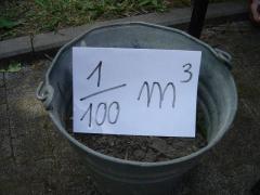 Aby obrazowo pokazać możliwą skalę zanieczyszczeń gleby przez odpady niebezpieczne (np. baterie) wyeksponowano 1/100 metra sześciennego czyli 1/100 tego, co może skazić jedna bateria.