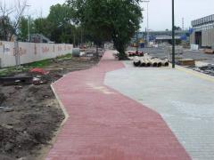 5. Z informacji uzyskanej od wykonawcy informujemy że ścieżka rowerowa została wyznaczona z pasa chodnika za pomocą kostki koloru czerwonego, (dla poprawy widoczności rozgraniczenia) oraz wykonywana jest z kostki bezfazowej (dla zmniejszenia niewygody użytkowników). Takie rozwiązanie było stosowane przed ogłoszeniem omawianego zarządzenia W załączeniu przesyłamy kopię pisma przewodniego uzgodnienia konstrukcji. [Od red. Pismo uzgadniające pomijamy jako mało istotne. Nie wspomina ono jednak ani słowem o konstrukcji czy nawierzchni drogi rowerowej. Czy pozostawiono ją do wyboru przez adresata? Na czyją odpowiedzialność?]
