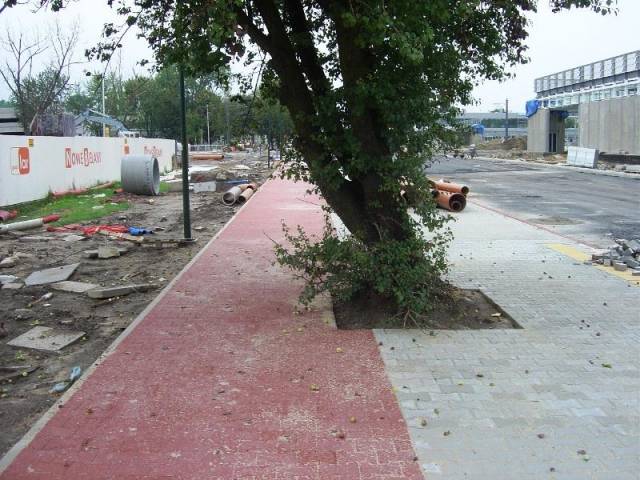 4. Wprowadzanie dodatkowych atrakcji i urozmaiceń w postaci drzew. Choć tu nie ma pewności, czy drzewo złośliwie wyrosłe w tak kolizyjny sposób nie zostanie wycięte, bo przecież ominięcie go łagodnym łukiem byłoby tchórzliwą kapitulacją. [Z ostatniej chwili - gruszę przeznaczono do wycinki ponieważ rośnie na gazie. Czy w ślad za tym pod topór pójdą wszystkie stołeczne drzewa zachodzące systemem korzeniowym na instalacje gazowe?]