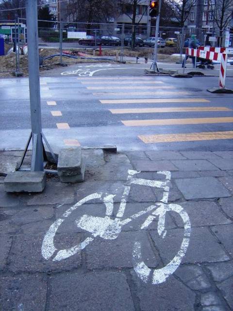 Ale teraz nie ma wątpliwości, że przez tę jezdnię można legalnie przejechać na rowerze. A że przejazd został "wycięty" z przejścia dla pieszych - to techniczny drobiazg.