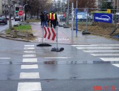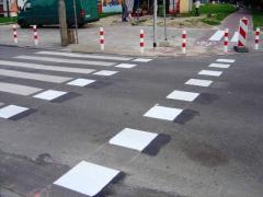 Ponownie w ruch poszły pędzle. Przesunięto oznakowanie poziome przejazdu znów na pozycję równoległą do zebry dla pieszych. Cóż z tego, skoro co innego się rozjechało? Co za pech! Linie przejazdu przestały trafiać w krawędzie ścieżki.